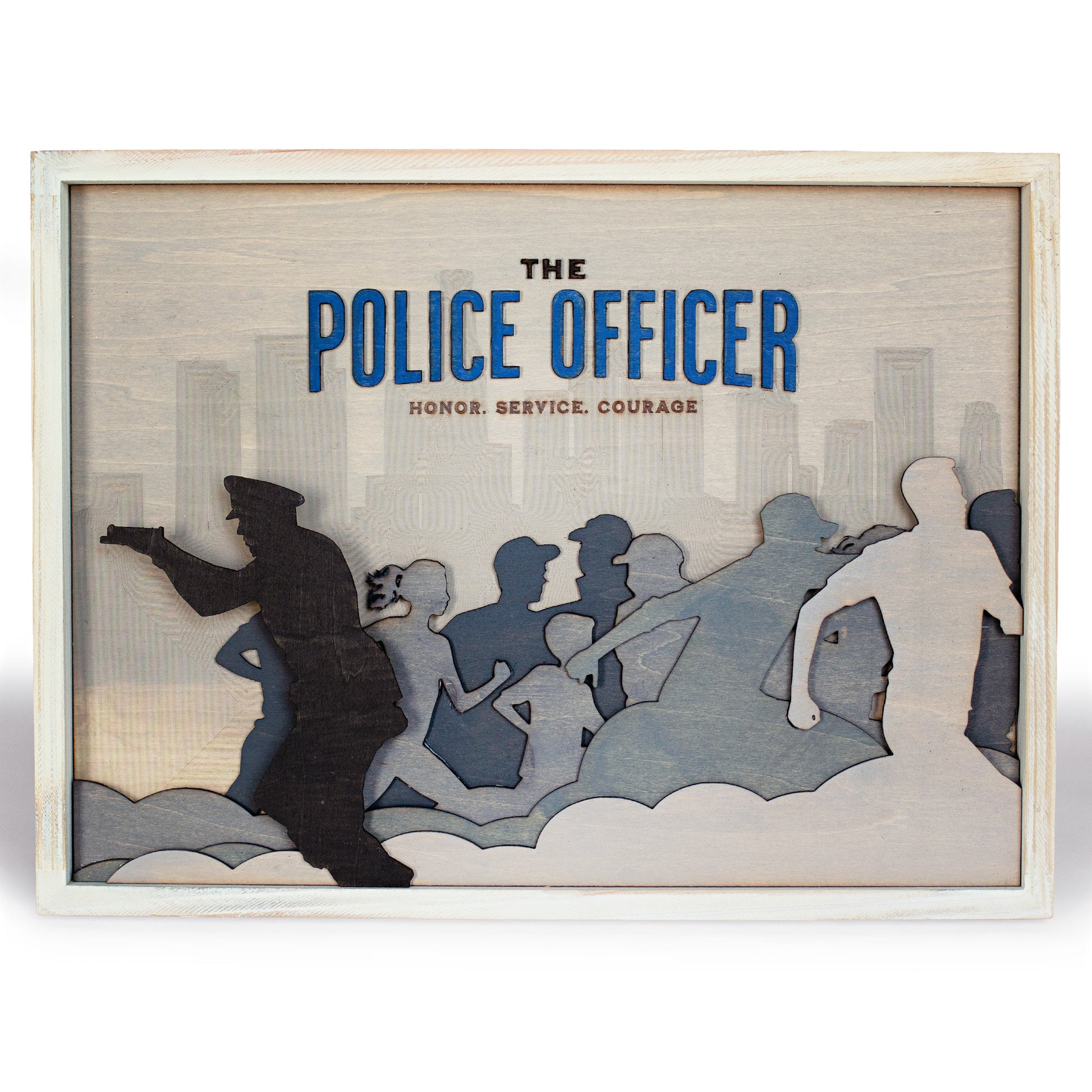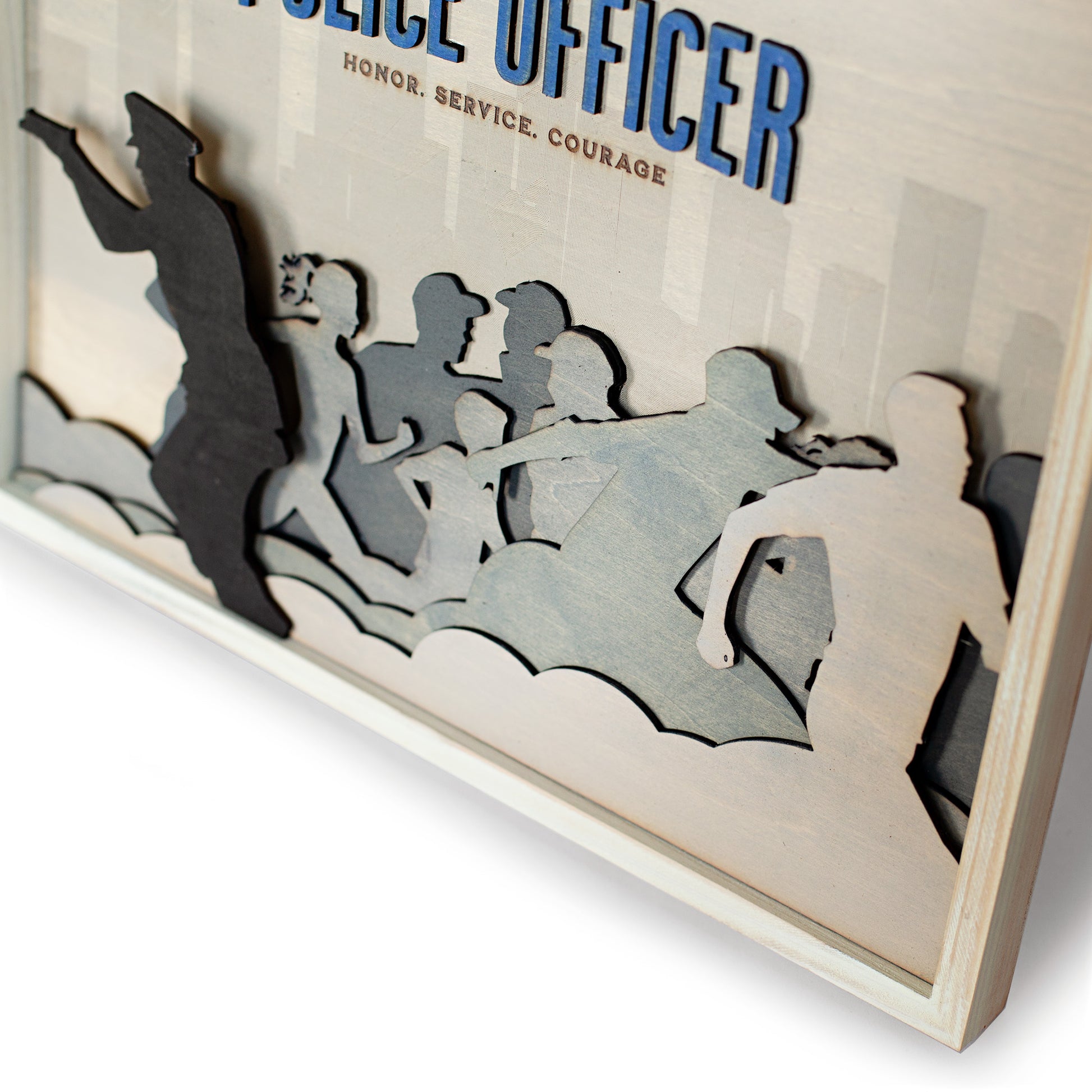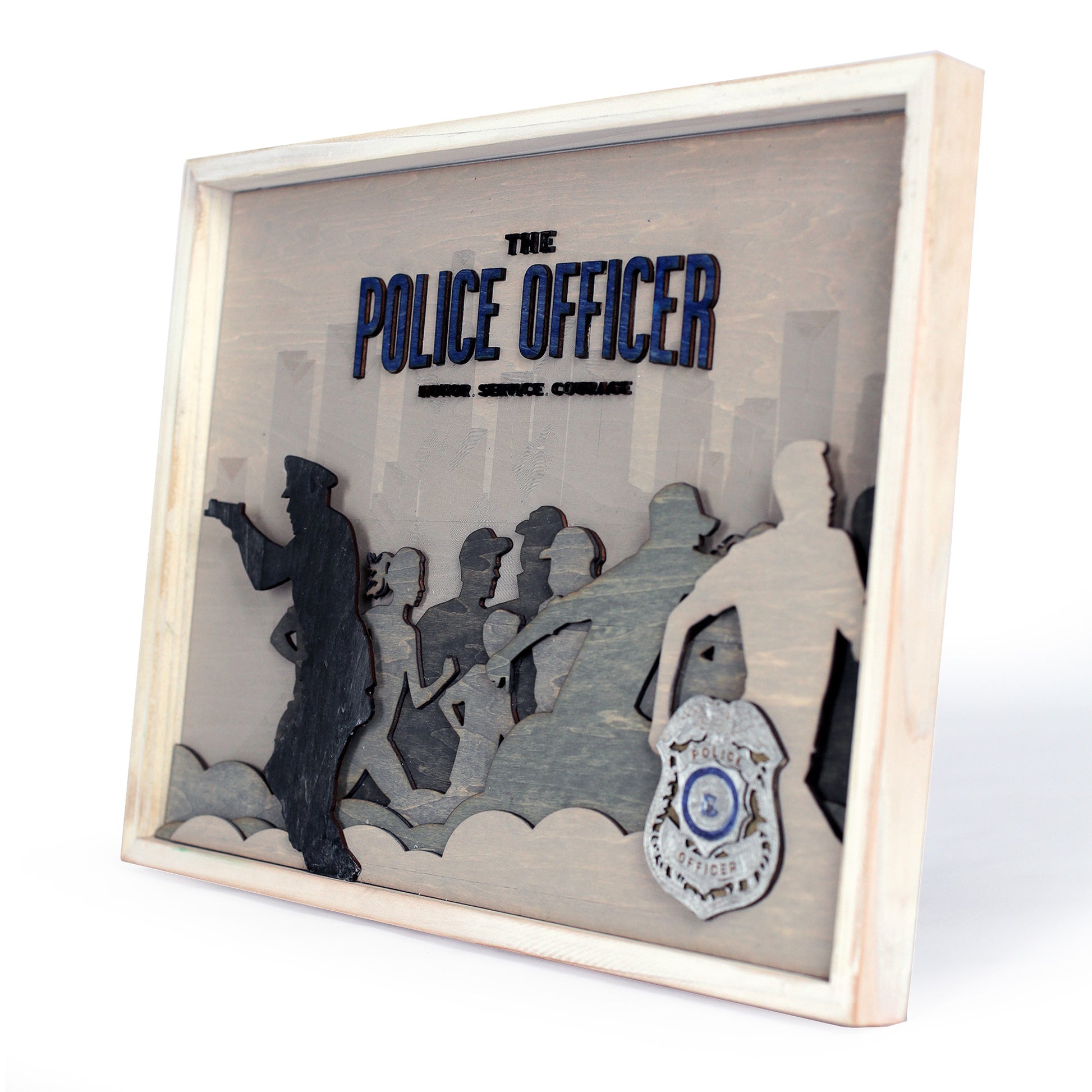 Celebrate the dedication and bravery of law enforcement with this Police Officer Wall Art, featuring a detailed badge design and the powerful words "Honor, Service, and Courage." This handcrafted wooden wall art is a meaningful tribute to the men and women who protect and serve, making it a perfect addition to any home, office, or police department.